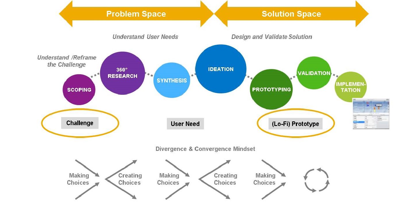 SAP a donc mis en œuvre une méthode de Design Thinking permettant de produire des solutions innovantes à partir d’une problématique identifiée. Il s’agit d’un processus utilisé par SAP dans la création de ses outils et solutions.